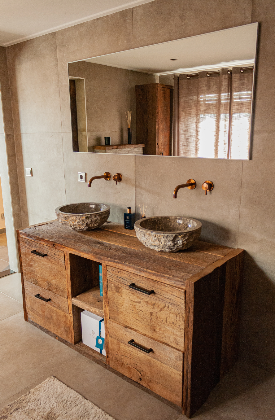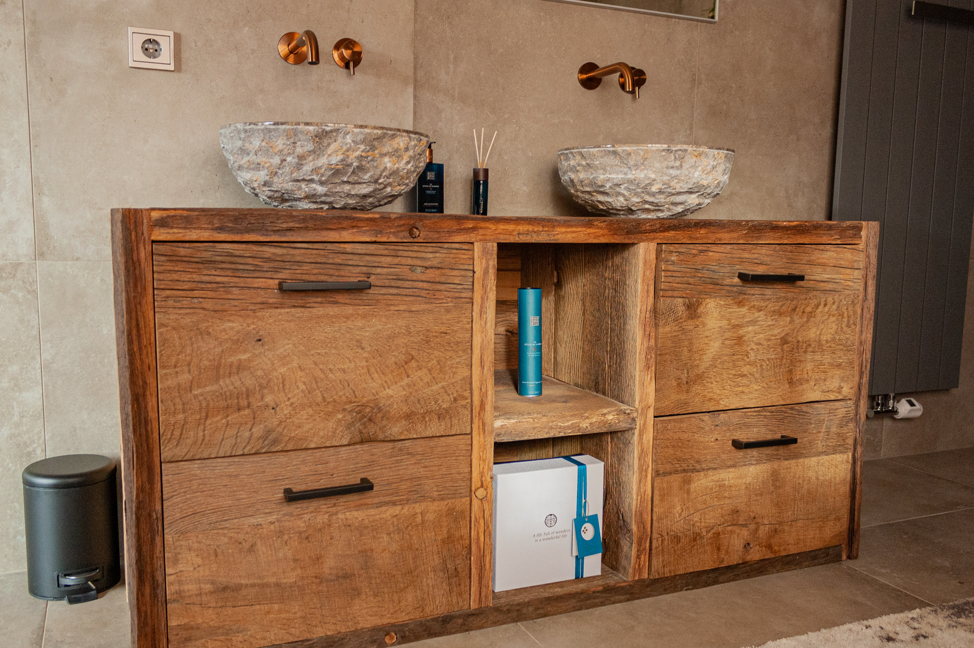 Breng karakter en warmte in de badkamer met dit robuuste meubel, volledig vervaardigd uit Barnwood Robuust. De doorleefde uitstraling van het hout geeft direct een landelijke sfeer, terwijl het ontwerp praktisch en tijdloos blijft.