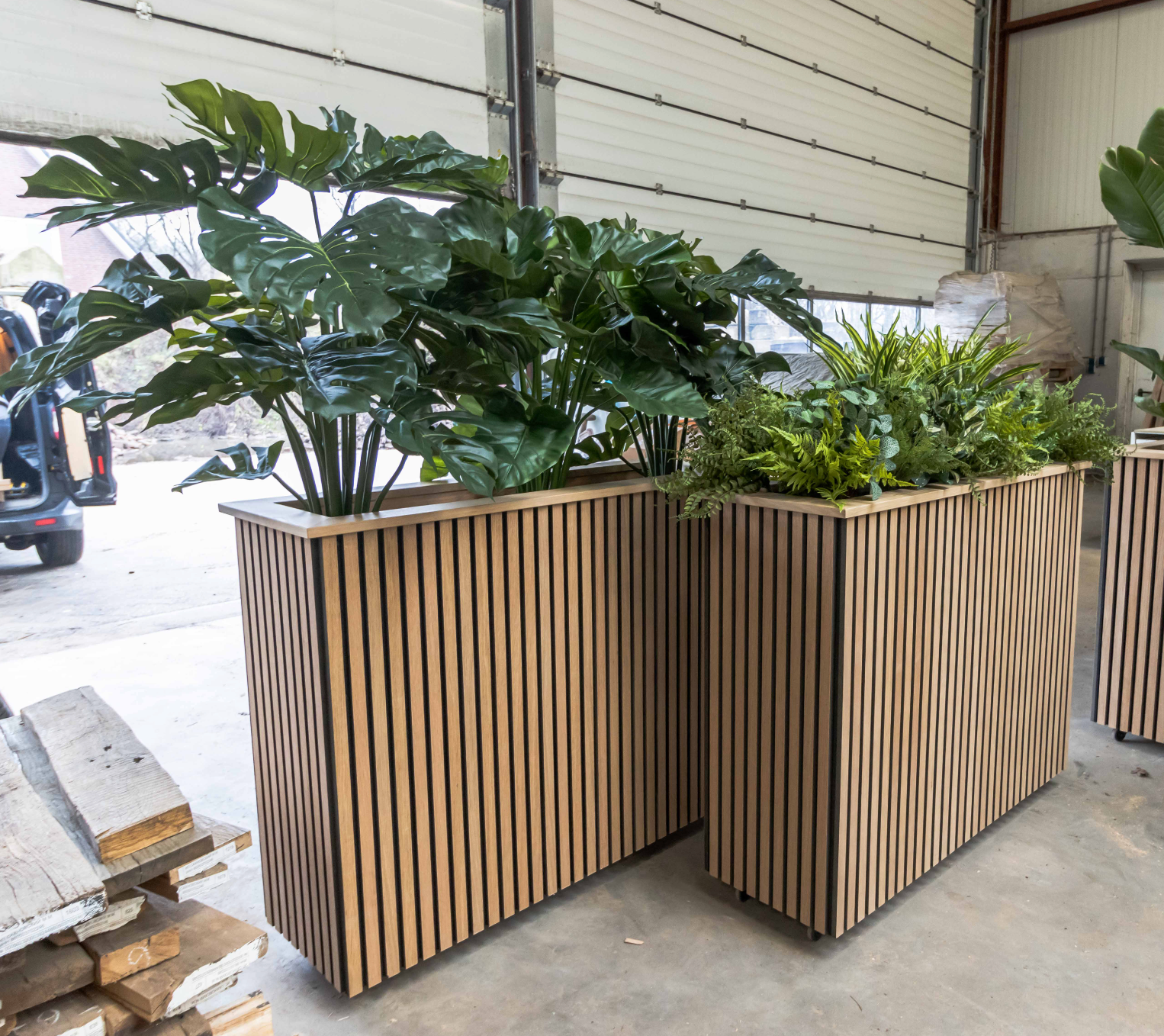 In dit product zijn de plantenbakken voorzien van kunstplanten; lage en hoge versie. De planten worden geleverd door Instagreen. Liever geen kunstplanten? De bakken worden ook aangeboden met échte planten.