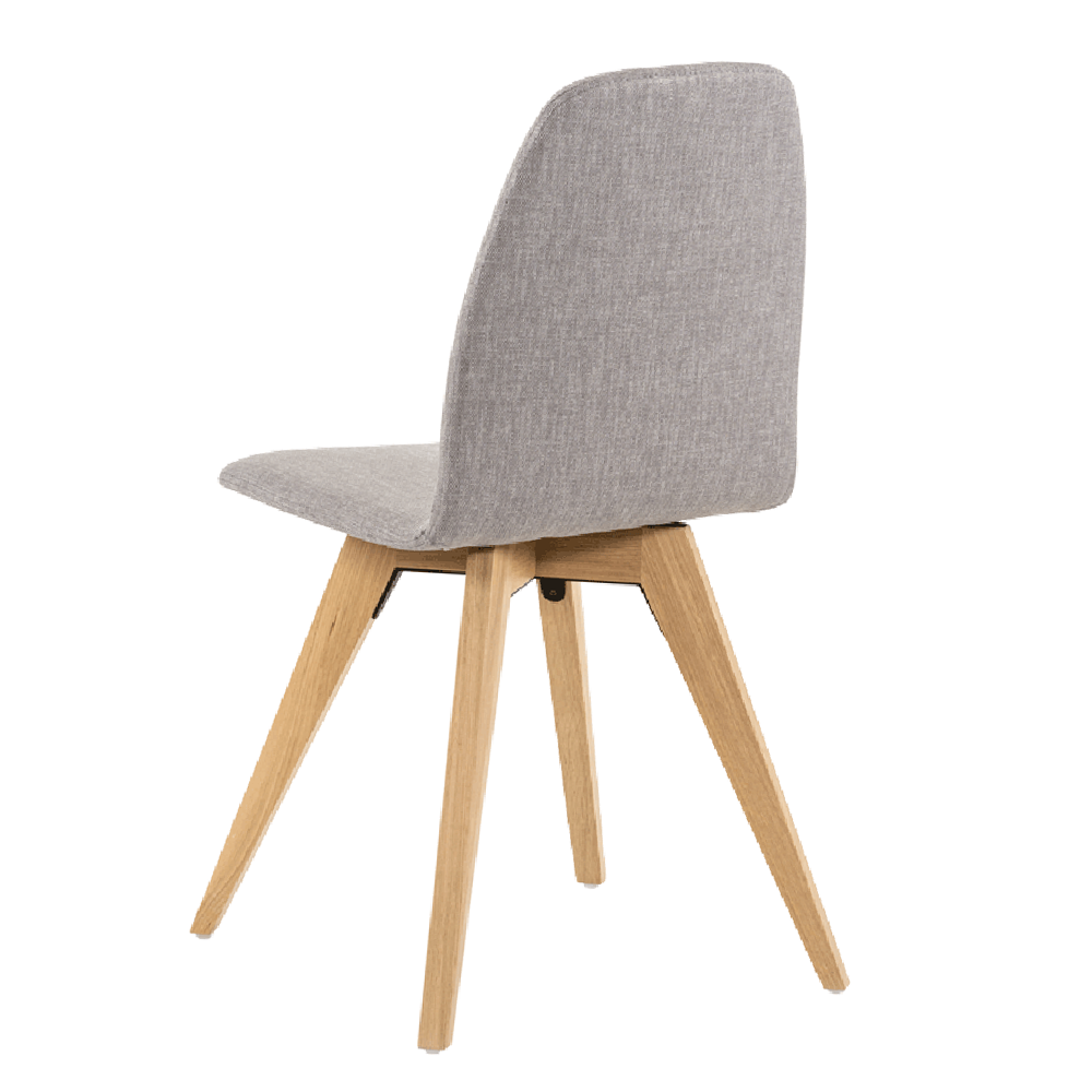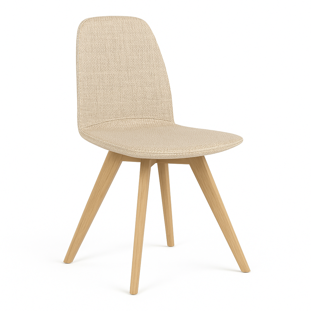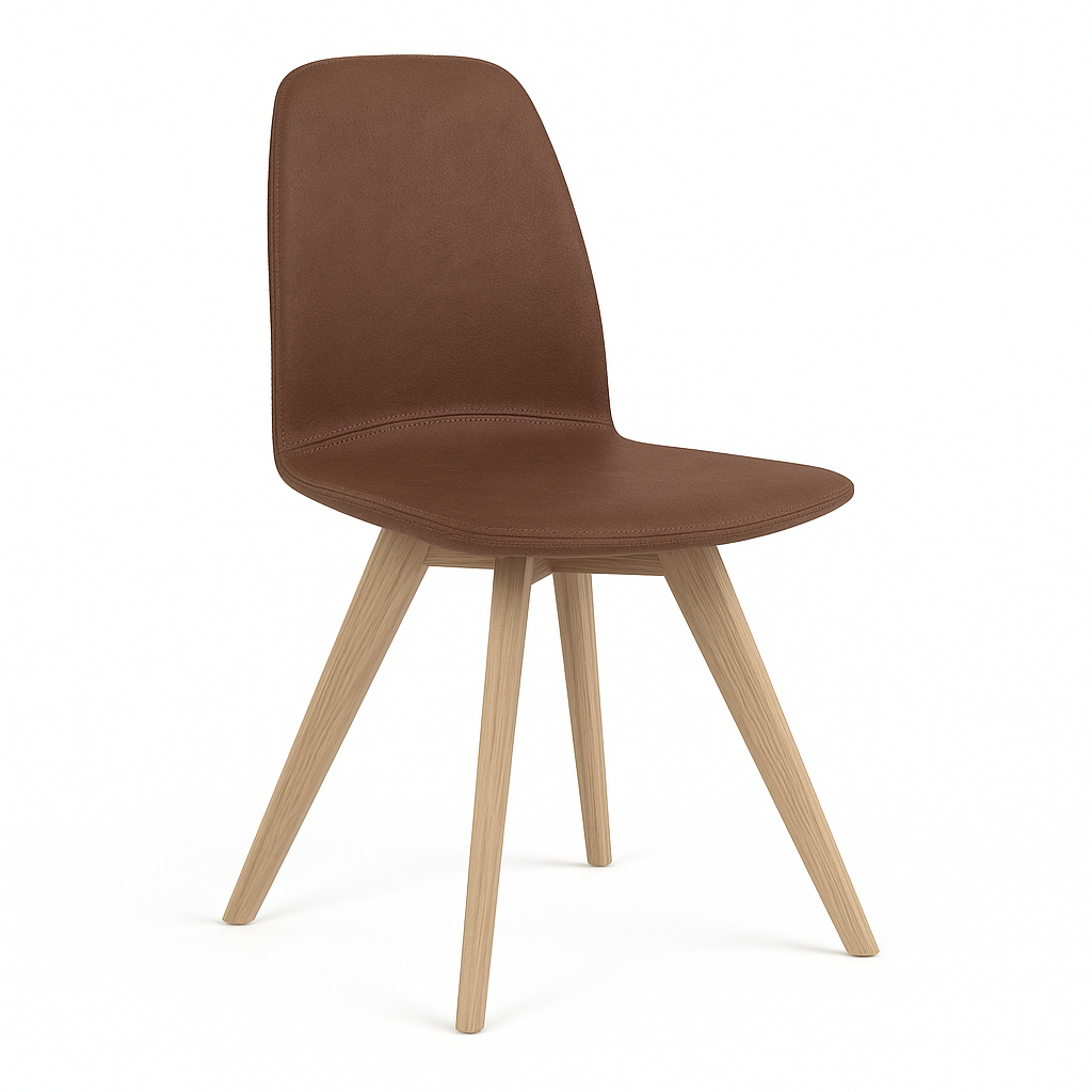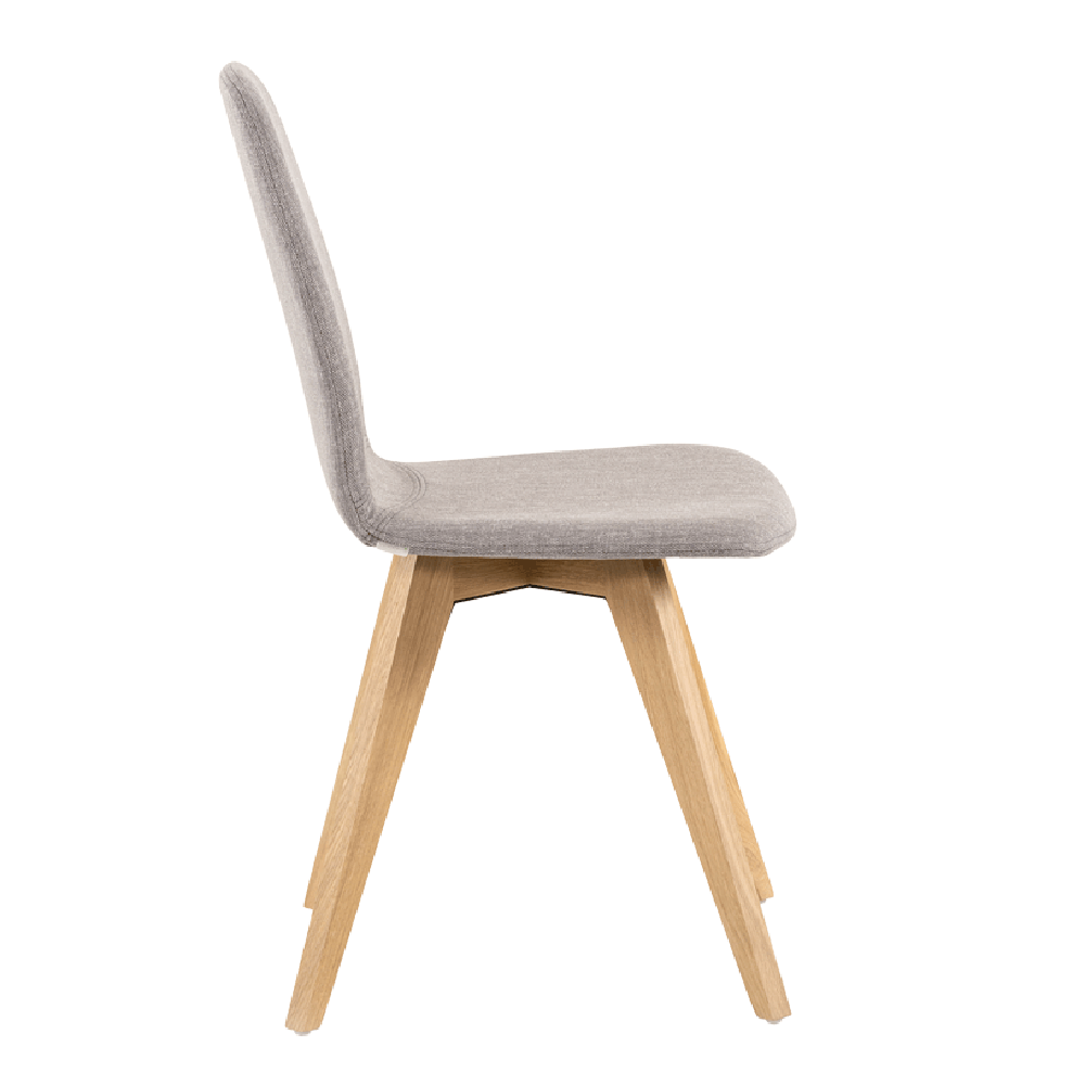 Het vaste eikenhouten onderstel geeft de stoel warmte en stabiliteit, terwijl de zitting – licht gebogen en comfortabel – zorgt voor prettig zitcomfort, zelfs bij langere diners. De combinatie van eenvoud en verfijning maakt van deze Moods een veelzijdige keuze voor elk interieur.