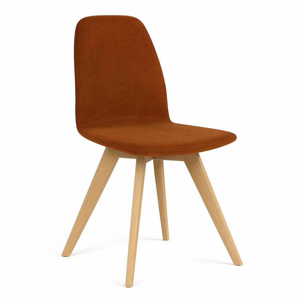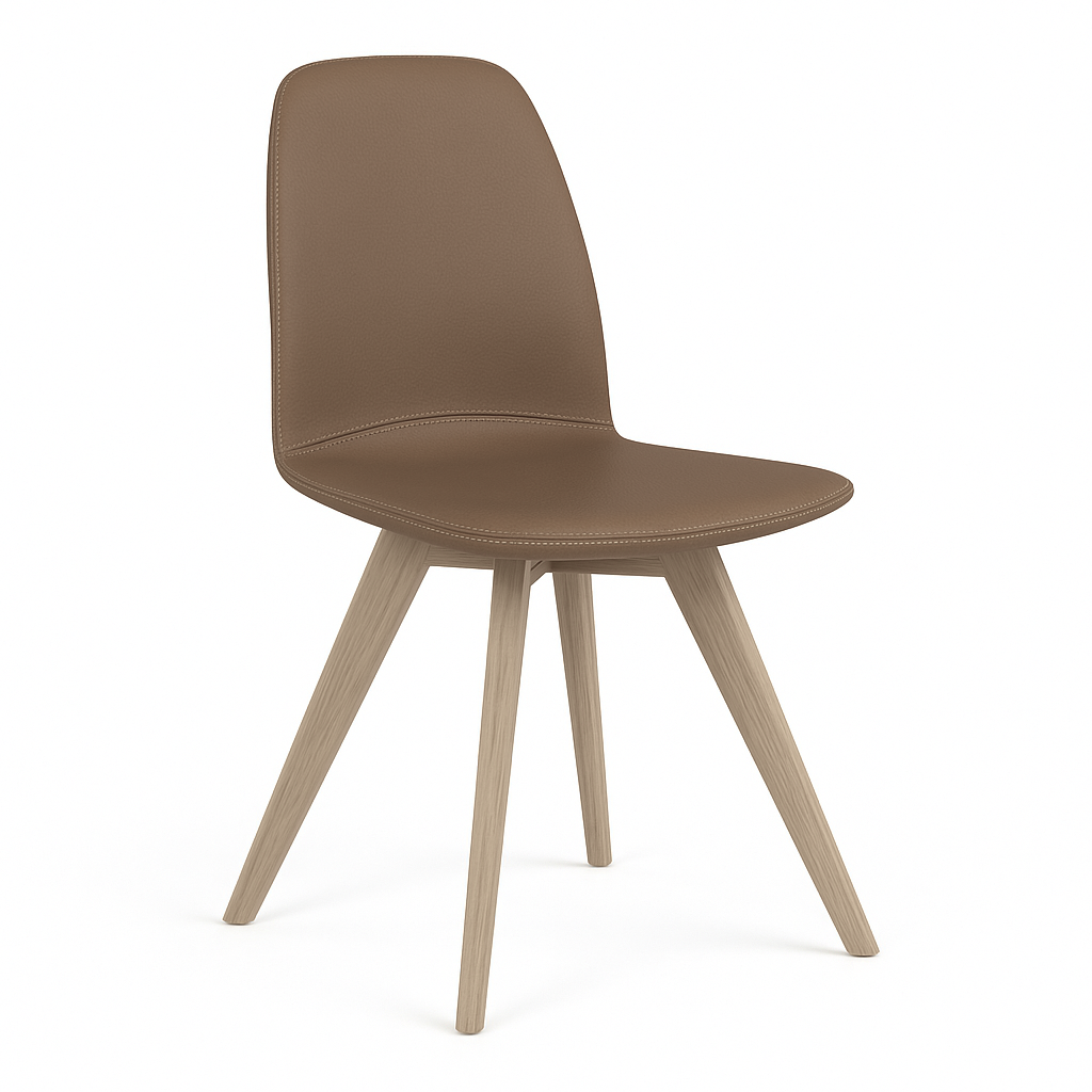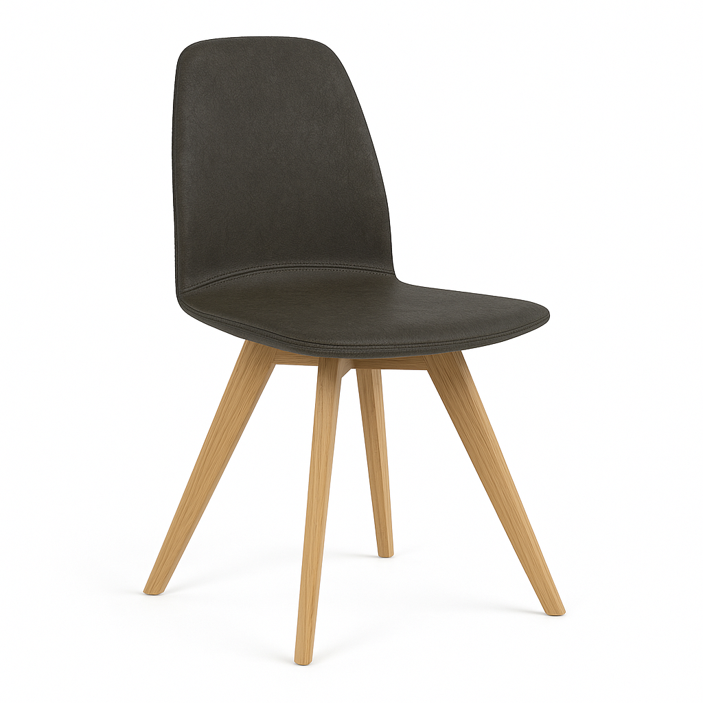 Het vaste eikenhouten onderstel geeft de stoel warmte en stabiliteit, terwijl de zitting – licht gebogen en comfortabel – zorgt voor prettig zitcomfort, zelfs bij langere diners. De combinatie van eenvoud en verfijning maakt van deze Moods een veelzijdige keuze voor elk interieur.