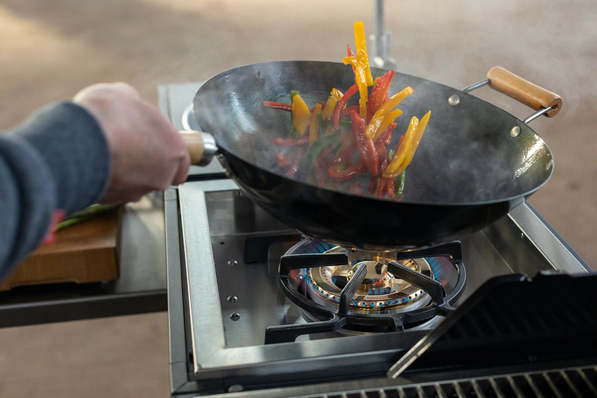 Deze veelzijdige outdoor kookplaat is meer dan alleen een wok brander. Gebruik reguliere pannen voor bijgerechten, kook pasta al dente, of maak de perfecte sauzen terwijl u tegelijkertijd op de barbecue kookt. De krachtige vlam en stabiele constructie maken complexe menu's mogelijk - van eenvoudige maaltijden tot een uitgebreid diner.
