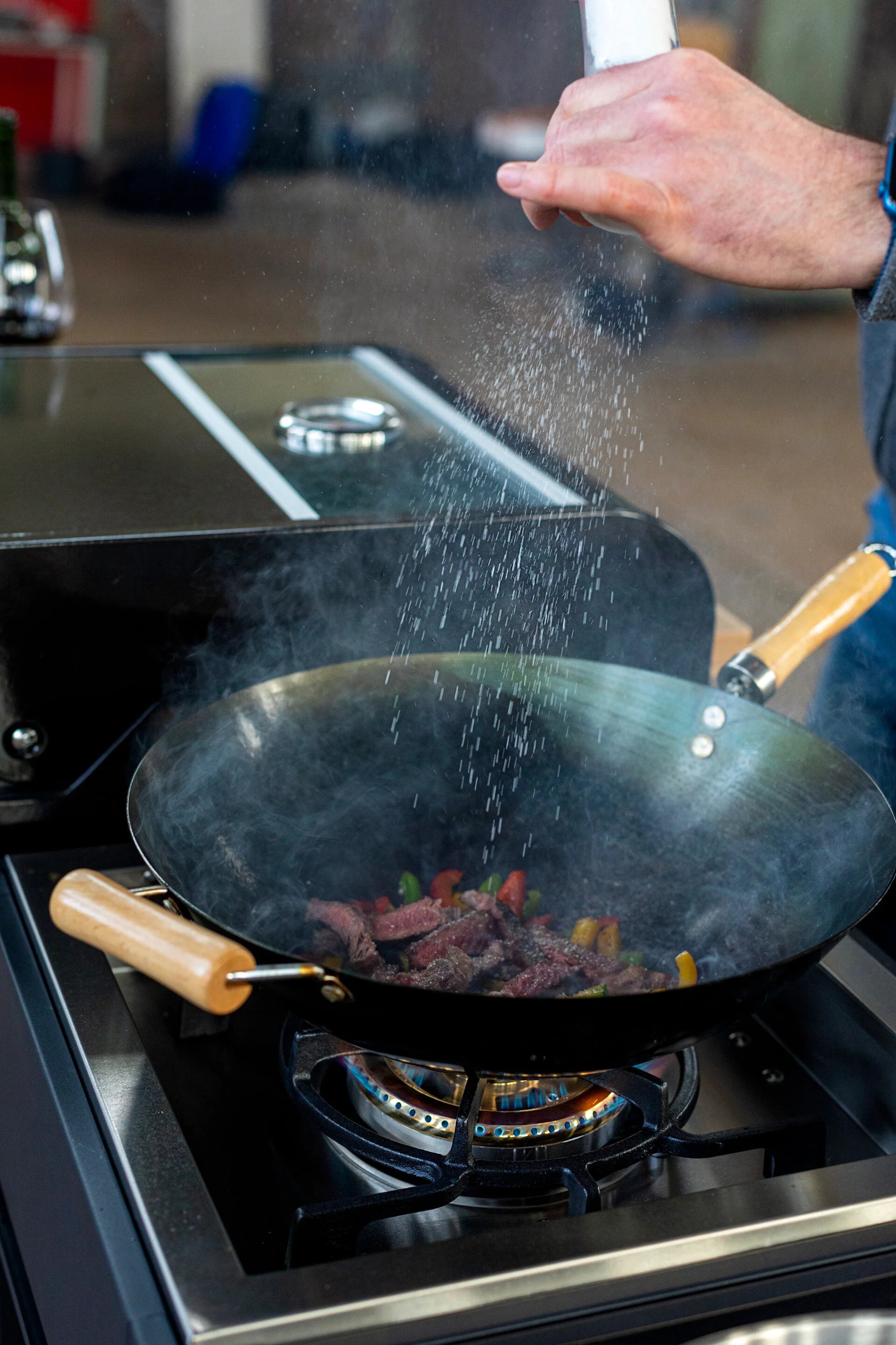 De oneQ Wok Burner transformeert uw tuin in een professionele kookruimte. Met 6.5kW vermogen bereikt u de hoge temperaturen die essentieel zijn voor authentieke wok-gerechten. Roerbak groenten in enkele minuten terwijl ze hun bite behouden, sear vlees op hoge temperatuur voor perfecte textuur, of bereid traditionele Aziatische gerechten zoals in uw favoriete restaurant.