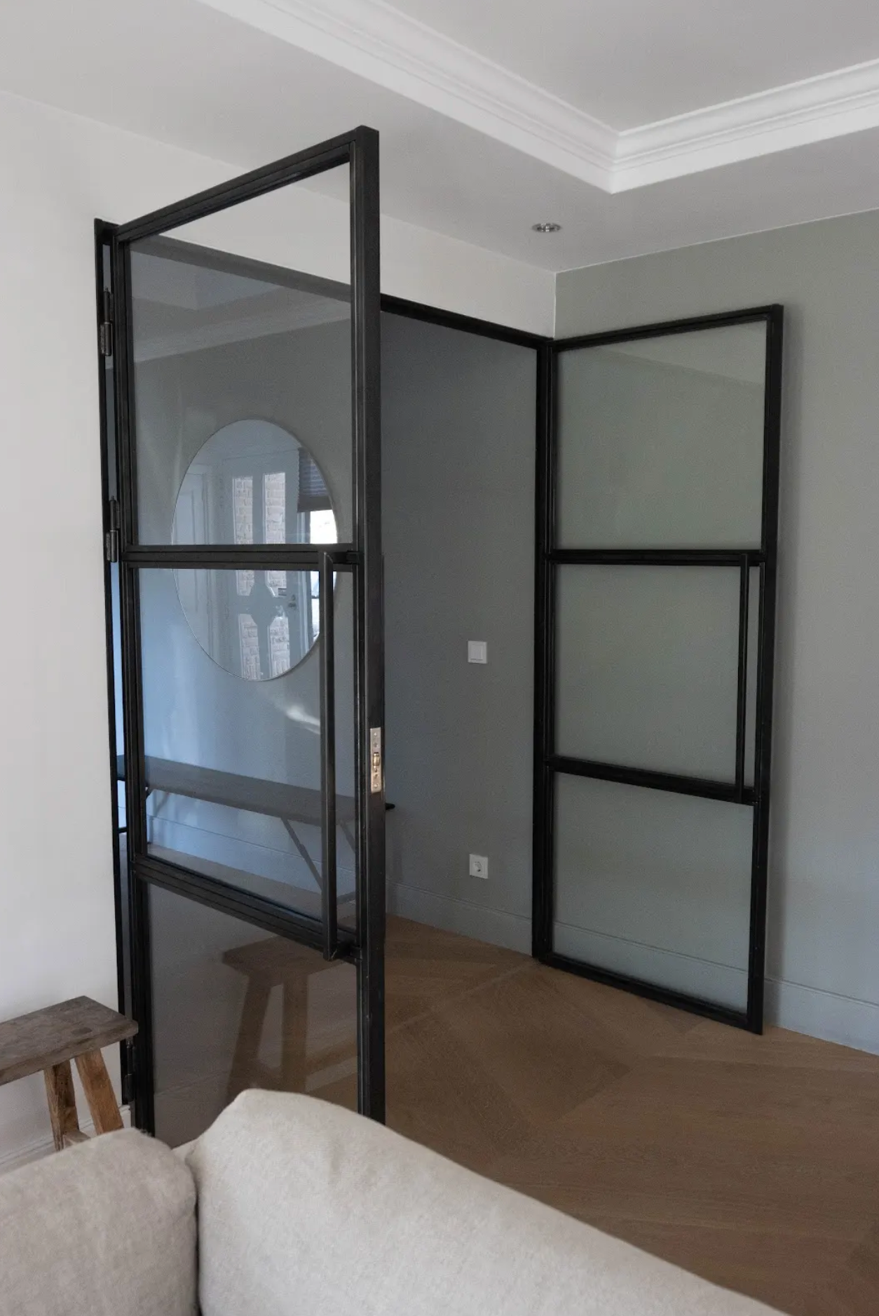 Creëer een indrukwekkende en moderne entree met onze dubbele stalen scharnierdeur. Deze deur combineert de robuuste uitstraling van zwart gepoedercoat staal met de elegantie van glas, waardoor een stijlvolle en functionele scheiding tussen grote ruimtes ontstaat. Voorzien van gelaagd glas 331 voor extra veiligheid en geluidsisolatie, en een rolslot voor soepele en betrouwbare sluiting. Maatwerk is mogelijk, zodat de dubbele deur perfect aansluit bij uw specifieke wensen en interieur.