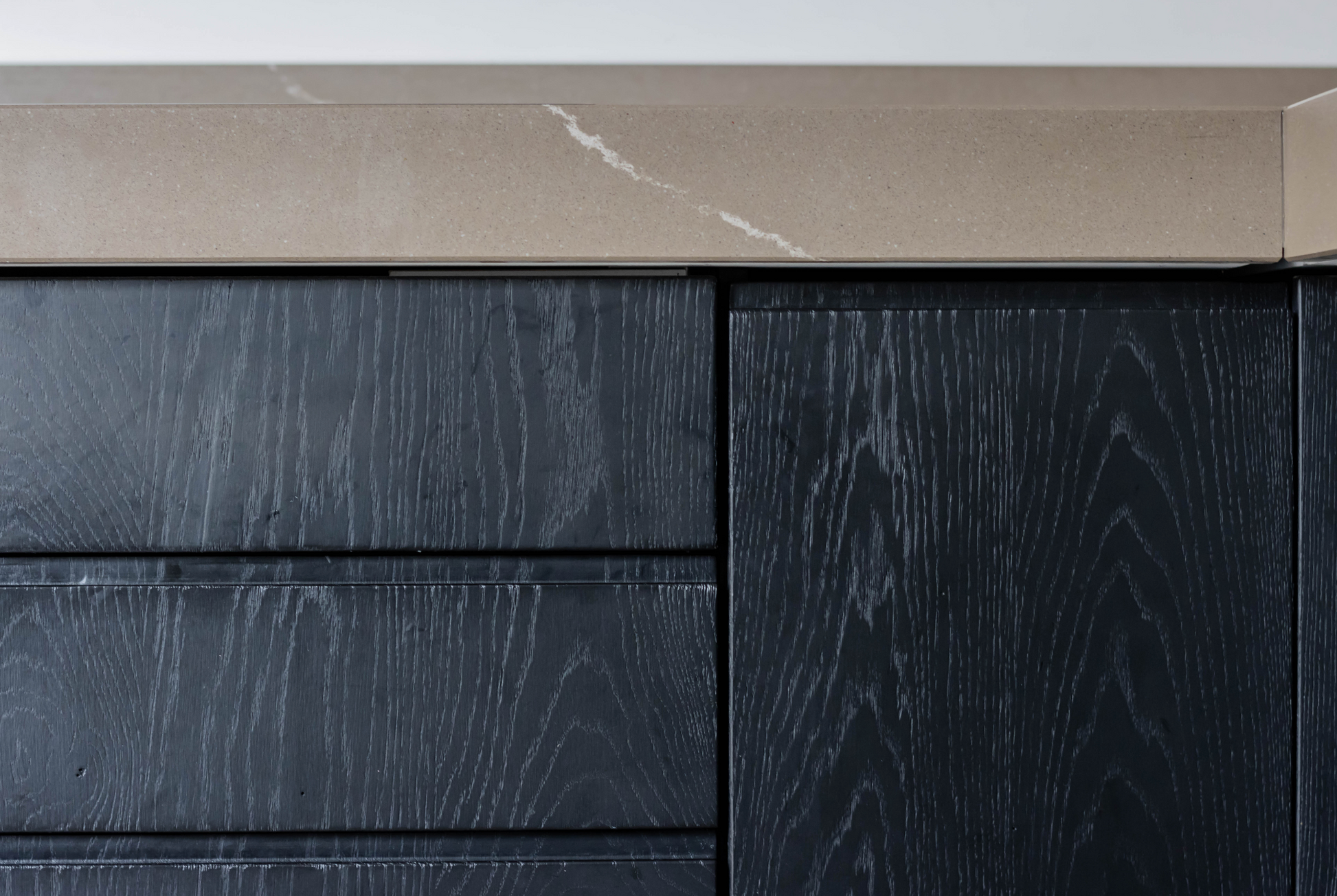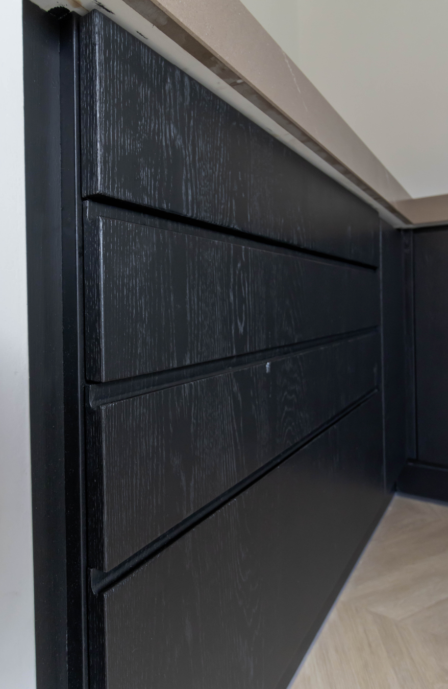 Onze rustiek eiken keukenfronten geven jouw keuken een stoere, karaktervolle uitstraling. Gemaakt van massief eikenhout (20 mm dik), geborsteld en behandeld met een zwarte dekkende behandeling.
